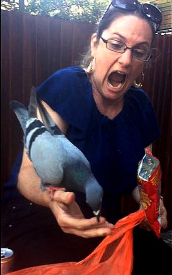 We don’t think this woman would have foreseen that her day will be ruined with a biting pigeon. By the looks of it, this woman was probably feeding the pigeon when she got bit. What a way to say thanks?