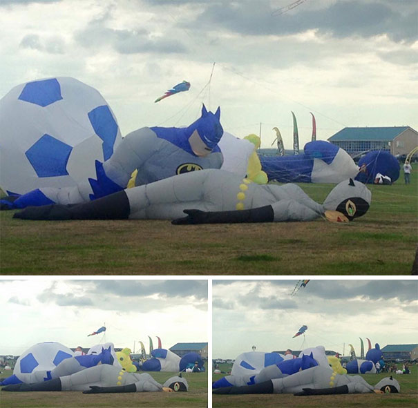 Batman is just blown away by the beauty of the inflatable woman beneath him in this picture. He can’t stop looking and who can blame him? After all, woman superheroes are strong, beautiful, bold, and brave!
