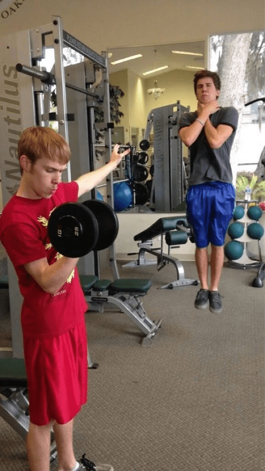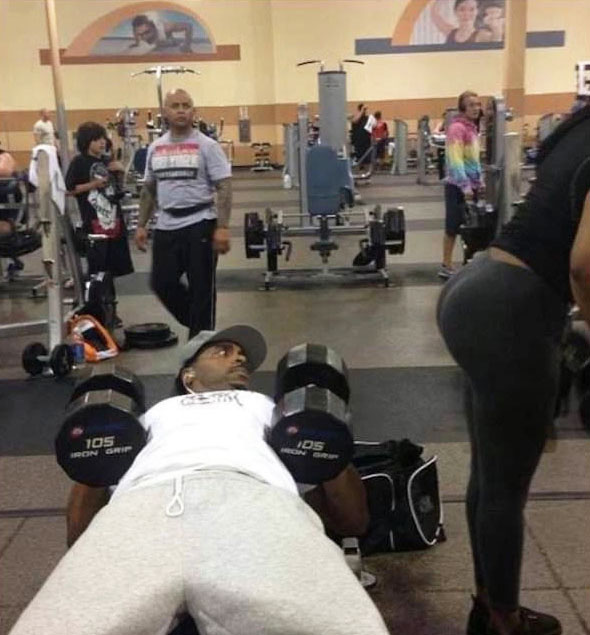 Men in the gym have a lot of self-control when it comes to avoiding junk food and staying healthy. They also don’t get distracted much when working out with their buddies unless a pretty girl walks into the room. This is what seems to be happening in this image. The person carrying the weights is distracted by the lady standing right next to him. Even others in the background seem to be more interested in the woman than working out. Someone even captured the shot that the lady can use to complain about the male members of this gym.