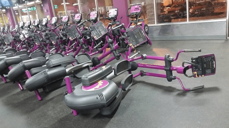 The machines in this picture have fallen on the gym ground. It is a possibility that one cycle at the start of the row fell and caused a chain reaction with the other machines. Someone may have made the cycle fall purposely by kicking it or using his hands. The gym may have suffered a lot if that was the case. This is especially true if these machines fell with great force and broke one or more parts. It may also be true that the cycles didn’t fall, but they were laid down like this by the gym authority.