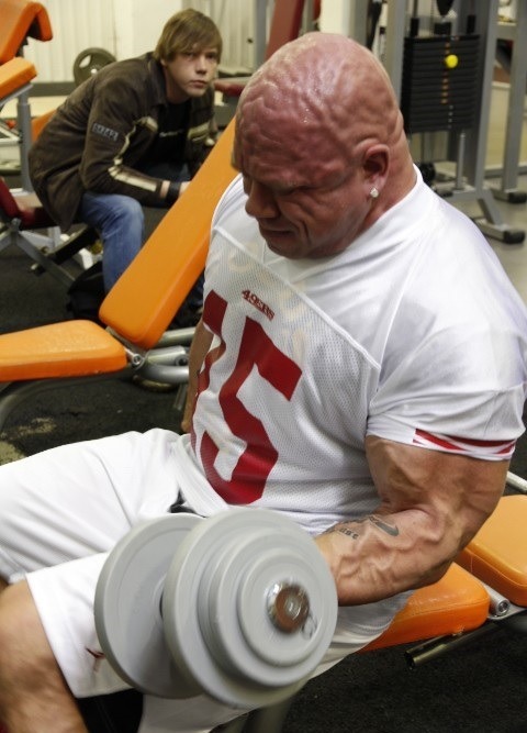 There are individuals who feel that there is no limit to how much muscle one can develop through exercising at the gym. However, the image contradicts this idea. The man in the picture has achieved such significant muscle growth that it may be challenging to even look at him. If his intention was to impress a woman, it likely had the opposite effect as she might have found his extreme muscularity off-putting. Alternatively, his motivation could have been for competitive fighting purposes. Regardless of the reason behind his muscular transformation, the overall appearance does not seem to be a good fit. Furthermore, the disproportion between his enlarged body and unchanged facial features gives him a peculiar look.