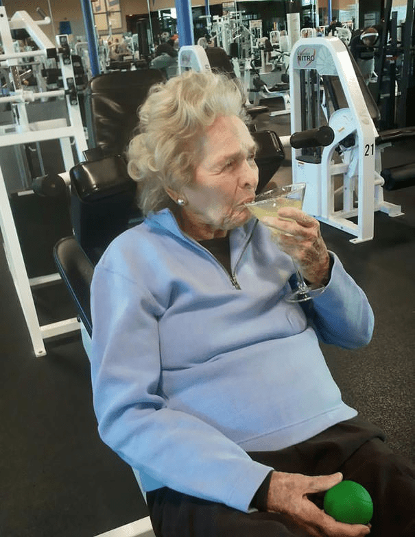This old may take the top spot for standing out at her gym because of that martini glass in her hand. If you look closely, you will realize that the woman is not neglecting her workout session. She is holding a weighted ball that is helping her while sitting on an exercising chair. The method may not be right for working out, especially if you’re an older adult, but the old woman does not seem to have any regrets. We are only wondering if there is a bar at her gym or if she got that martini glass from home.