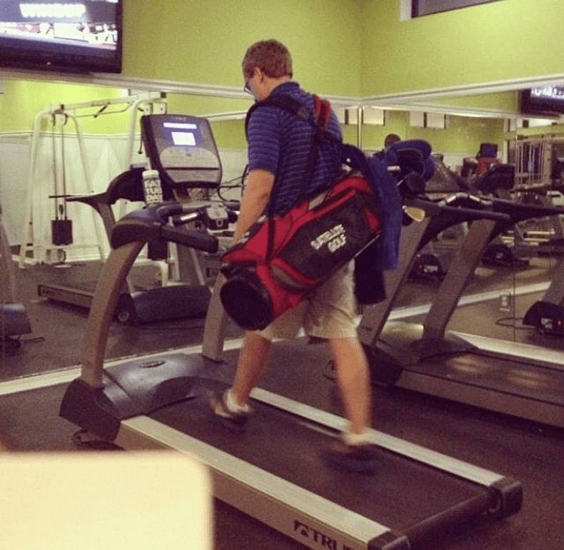 Some individuals might find it unusual to see others exercising at the gym while carrying their gym bags. It appears that the individual couldn’t secure a locker to store his belongings, hence opting to bring them along to use during their treadmill session. Alternatively, this person may be engaging in specialized training, like some athletes do. For instance, golfers sometimes walk on treadmills with their bags as they need to practice carrying them on the golf course. While this scenario might strike regular gym-goers as strange, it is a common practice among athletes globally.