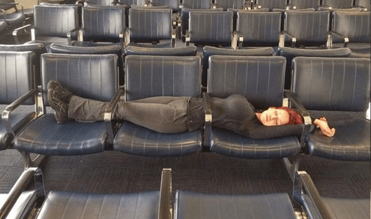 If you’ve been a victim of a heavily delayed flight, you can probably understand this girl’s desire for sleep. But turning these benches into a bed? That’s resourceful and economical. What a way to make the best out of a tough situation. And that’s rule number one of surviving delayed flights!